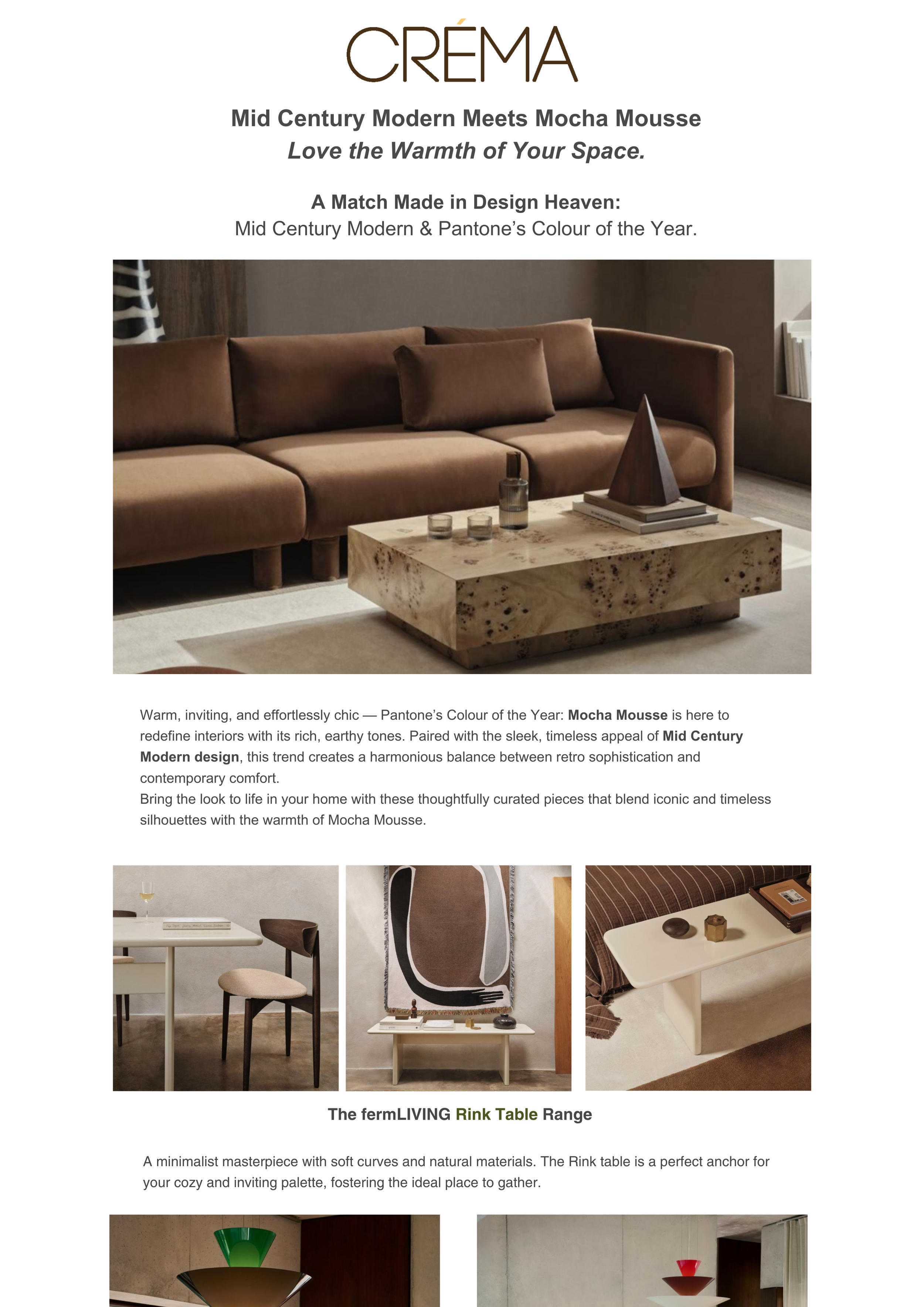 Position Crema as a leader in high-end, modern furniture and design in Southern Africa.
